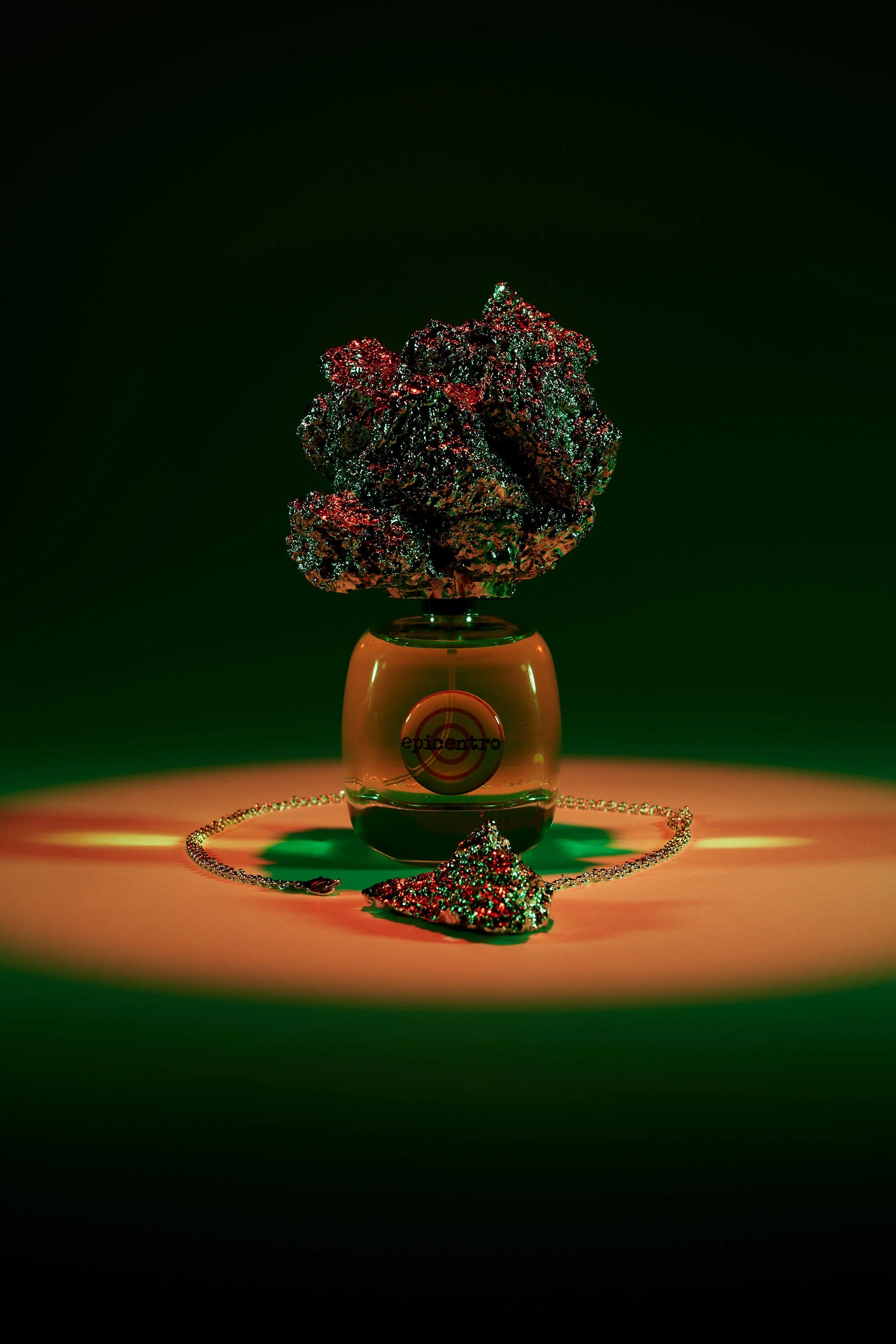 Epicentro is meant as a reaction: to become aware of what is happening, analyze it, and react with the security of a thought linked to Beauty. Epicentro is a true artistic installation full of emotions that encourages active engagement with the work, thanks to the stimuli it contains that activate the five senses.