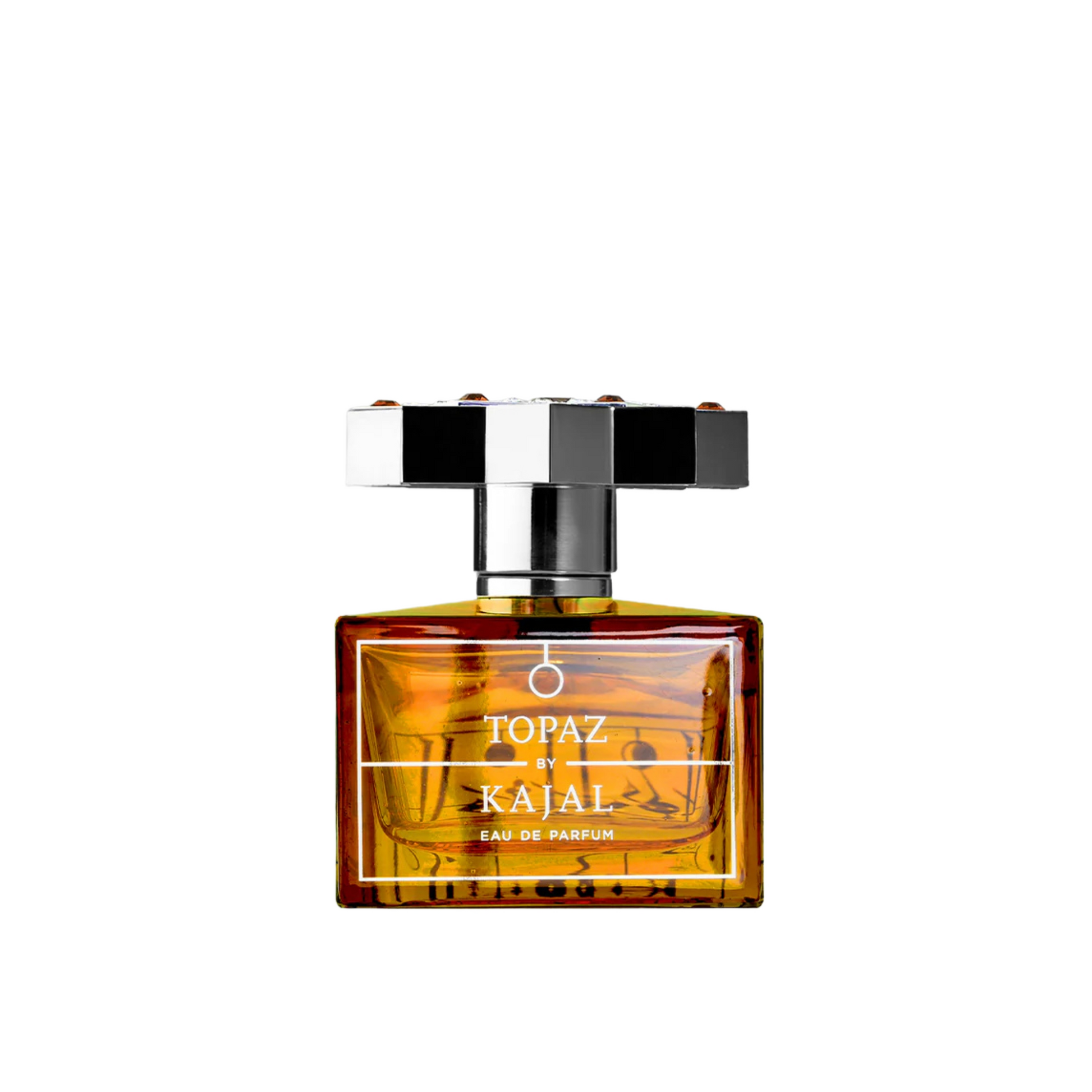 Topaz by Kajal is an Oriental Floral fragrance for men and women. It is a new perfume. Topaz was launched in 2025. The top notes are Orange Blossom, Black Elderberry, Rum, and Lime; the heart notes are Candied Lemon, Rose, Blackcurrant Bud, and Cedar; the base notes are Ambroxan, Ambergris, Cashmere Wood, and Musk.