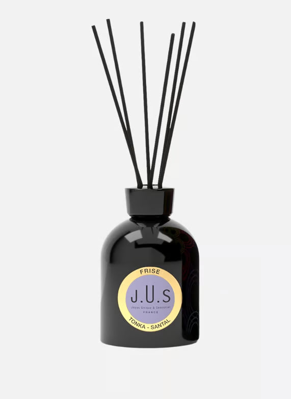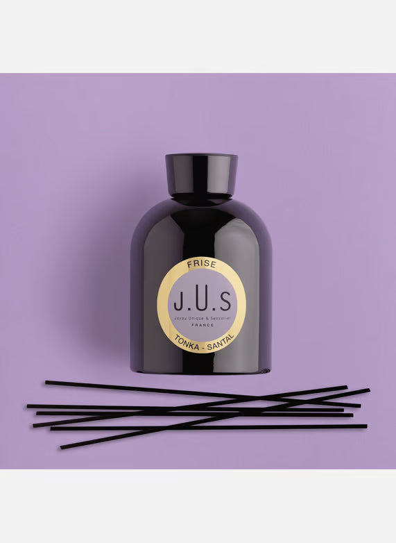 With Jusbox, the craftsmanship of master perfumers meets a modern concept: creating fragrances inspired by music. These two arts indeed share the power to revive memories and emotions. What can you find in the collection? The Frise scented diffuser. Designed with quality materials and an eco-friendly approach, it will release a fragrance to transform your space into a place of relaxation and well-being.